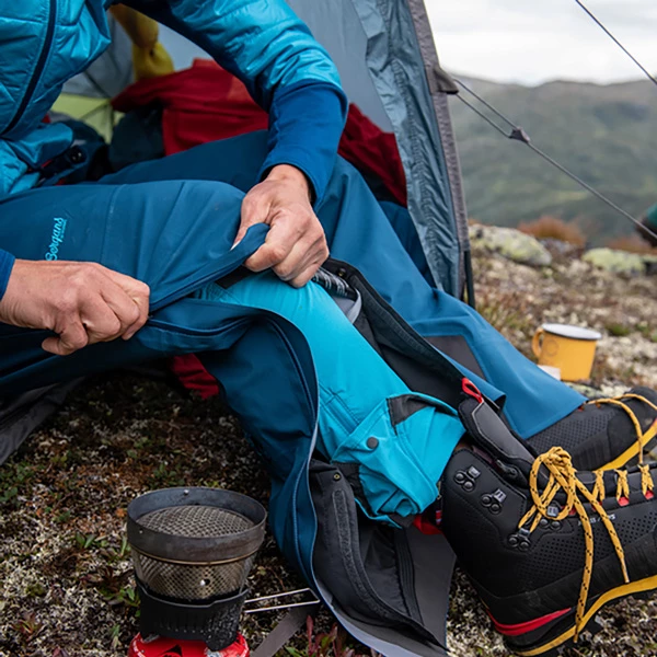 - Materialegenskaper: 3-lags Dermizax®NX med 15% plantebasert Ecodear®-polyester. Vanntett (vannsøyle: min. 20 000 mm), vindtett og enestående pustende egenskaper. Komfortabelt, hurtigtørkende og fuktabsorberende materiale i linningen.