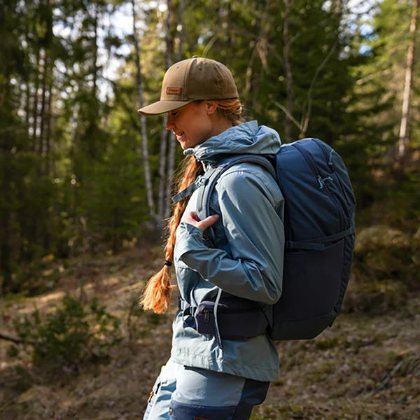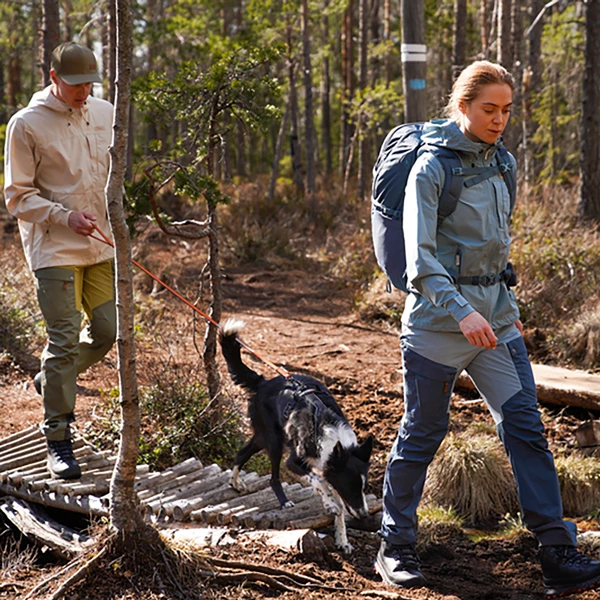- Vindtett materiale i resirkulert polyester og økologisk bomull med PFAS-fri impregnering.