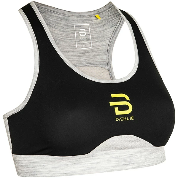 Dæhlie Bra Training Wool er en teknisk sports-BH i 60% merinoull ment for trening. Med sin front i vind- og vannavvisende materiale gir den en god beskyttelse mot vær og vind samt ekstra støtte for brystpartiet.