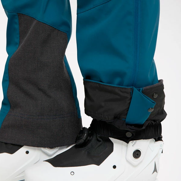 - Materiale: GORE-TEX Infinium med 92 % resirkulert polyamid, 8 % elastan. Myk og matt enkeltvevd, veft-stretch utside av resirkulert nylon med en bakside i lett, børstet trikot. Nedre del av buksen er forsterket med et kraftig kevlarmateriale, 73 % polyamid, 14 % polyuretan, 13 % aramid-kevlar. FC-fri DWR.