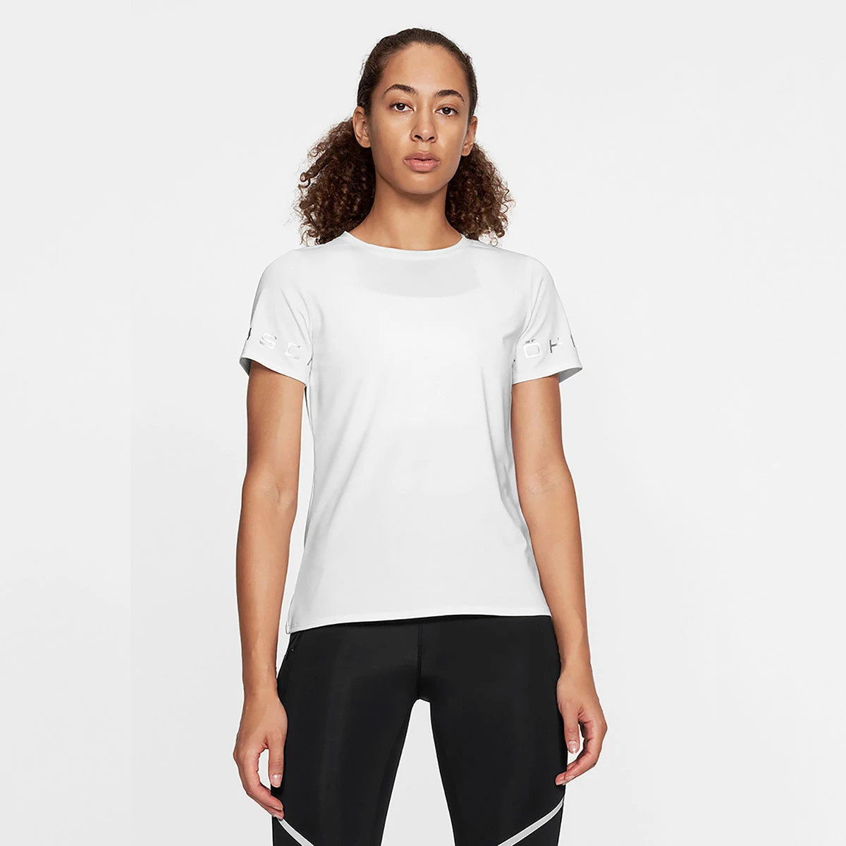 Kortermete treningstopp, laget av resirkulert materiale. Det elastiske stoffer borttransporterer fukt og er perfekt til all slags høyintensitetstrening. Uansett hva slags trening du holder på med, er denne t-skjorten et perfekt valg. Toppen har en normal passform med stor sølvfarget Röhnisch-logo nederst på ermene.