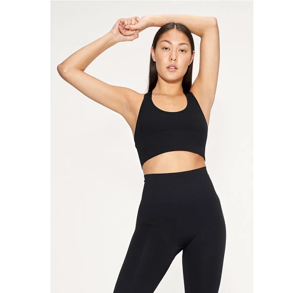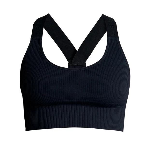 - Sportsbra i sømløst ribbestrikket stoff.