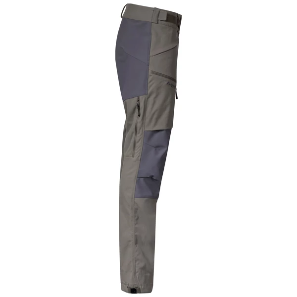Resirkulert polyamid med 2-veis stretch, og vanntett softshellmateriale med cordura på utsiden og merinoull på innsiden over setet og knærne. Begge med PFAS-fri impregnering. Komfortabelt, hurtigtørkende og fuktabsorberende materiale på innsiden av linningen. Produktet inneholder bluesign® approved fabrics.
